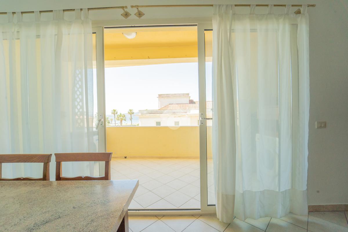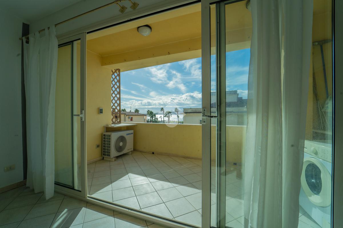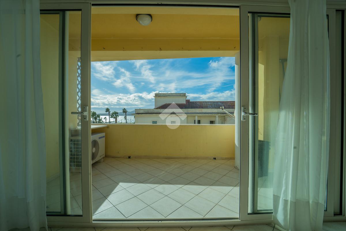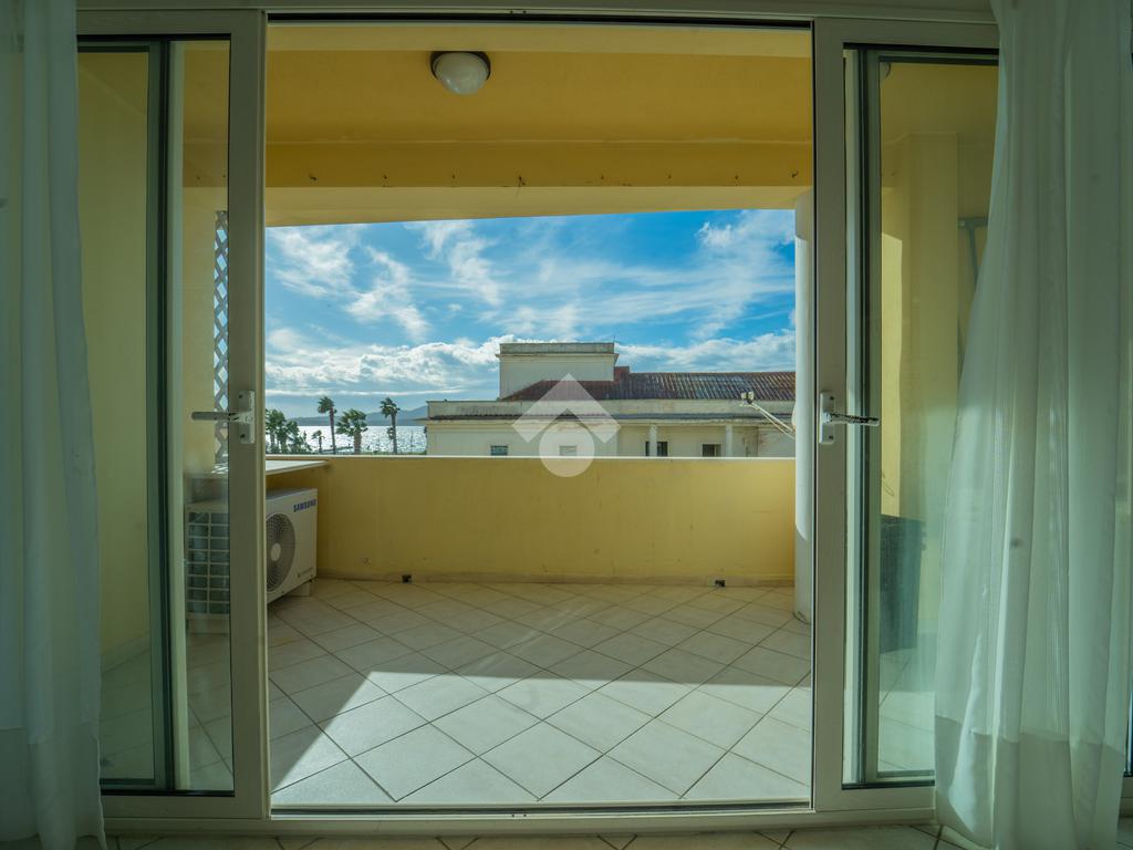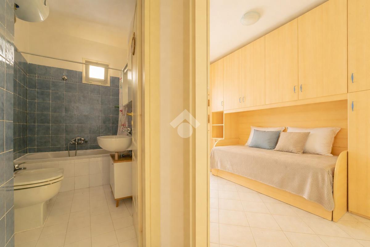 Questo primo piano sviluppato su unico livello possiede la metratura tipica della casa da mare, con un ingresso che accoglie su una luminosa sala con angolo cottura a vista e terrazzo con vista suggestiva sul mare dove è possibile mangiare in assoluta riservatezza con amici e parenti. Dal disimpegno si accede alla zona notte dove sono presenti 2 stanze da letto di cui una matrimoniale con balcone che prospetta sul lato opposto all'ingresso e seconda camera anch'essa dotata di balconcino. Completa l'interno un bagno finestrato con vasca. Importante inoltre la presenza di una cantina compresa assieme all'appartamento posta al piano seminterrato e accessibile direttamente dall'interno tramite scala o ascensore.