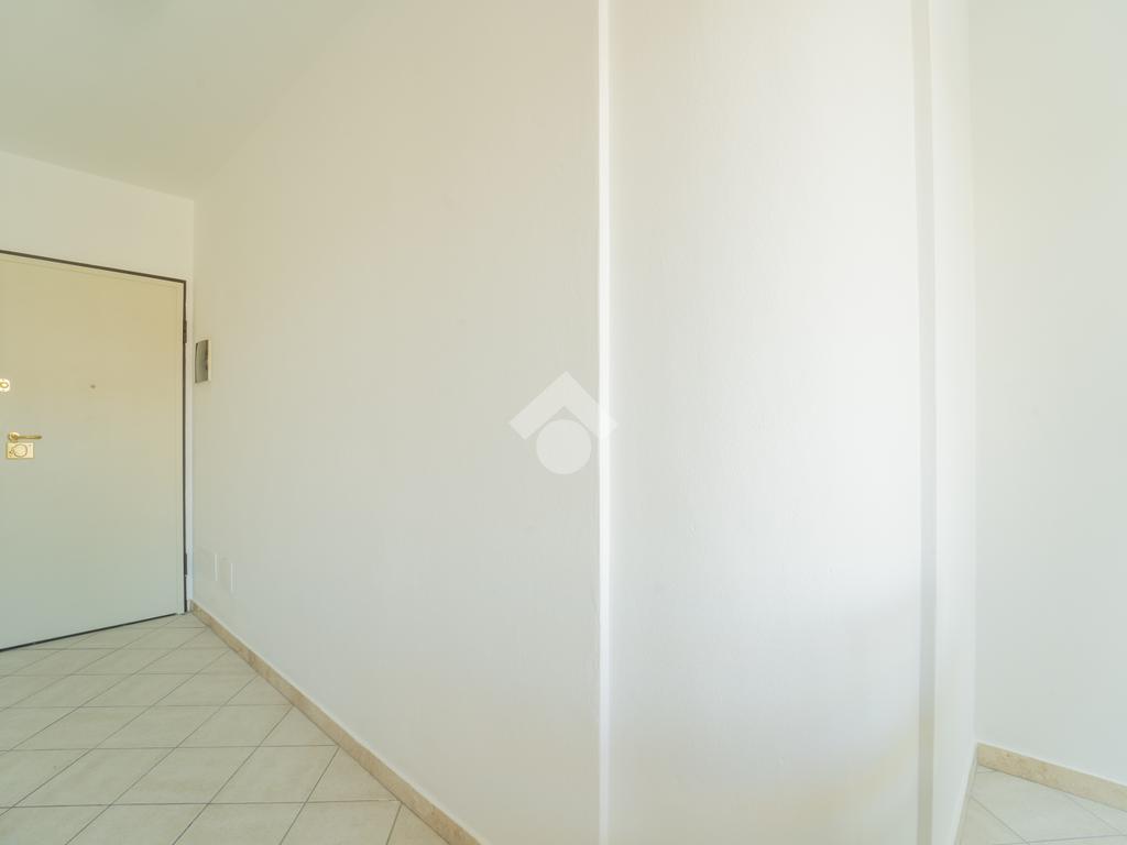 Sul lato del complesso è presente l'ingresso comune dal quale si può accedere tramite ascensore agli appartamenti ai piani superiori ed al piano seminterrato che ospita i box e le cantine.