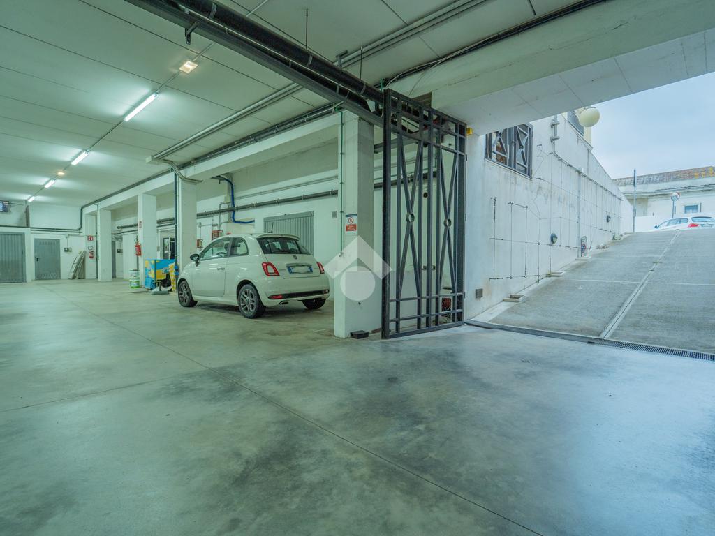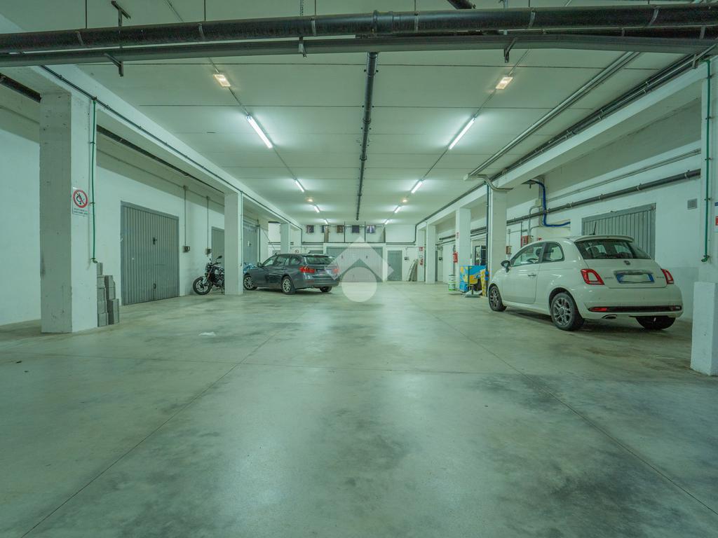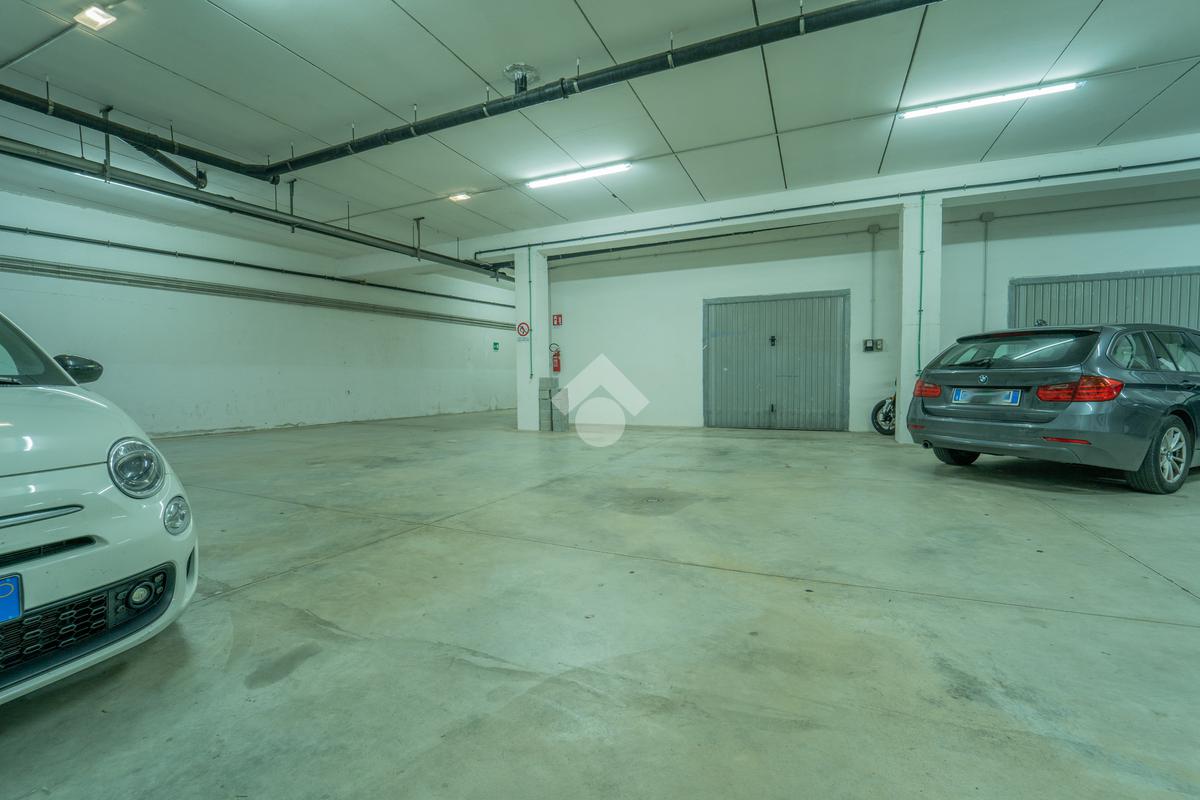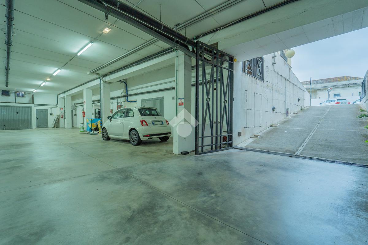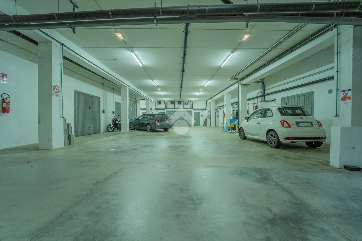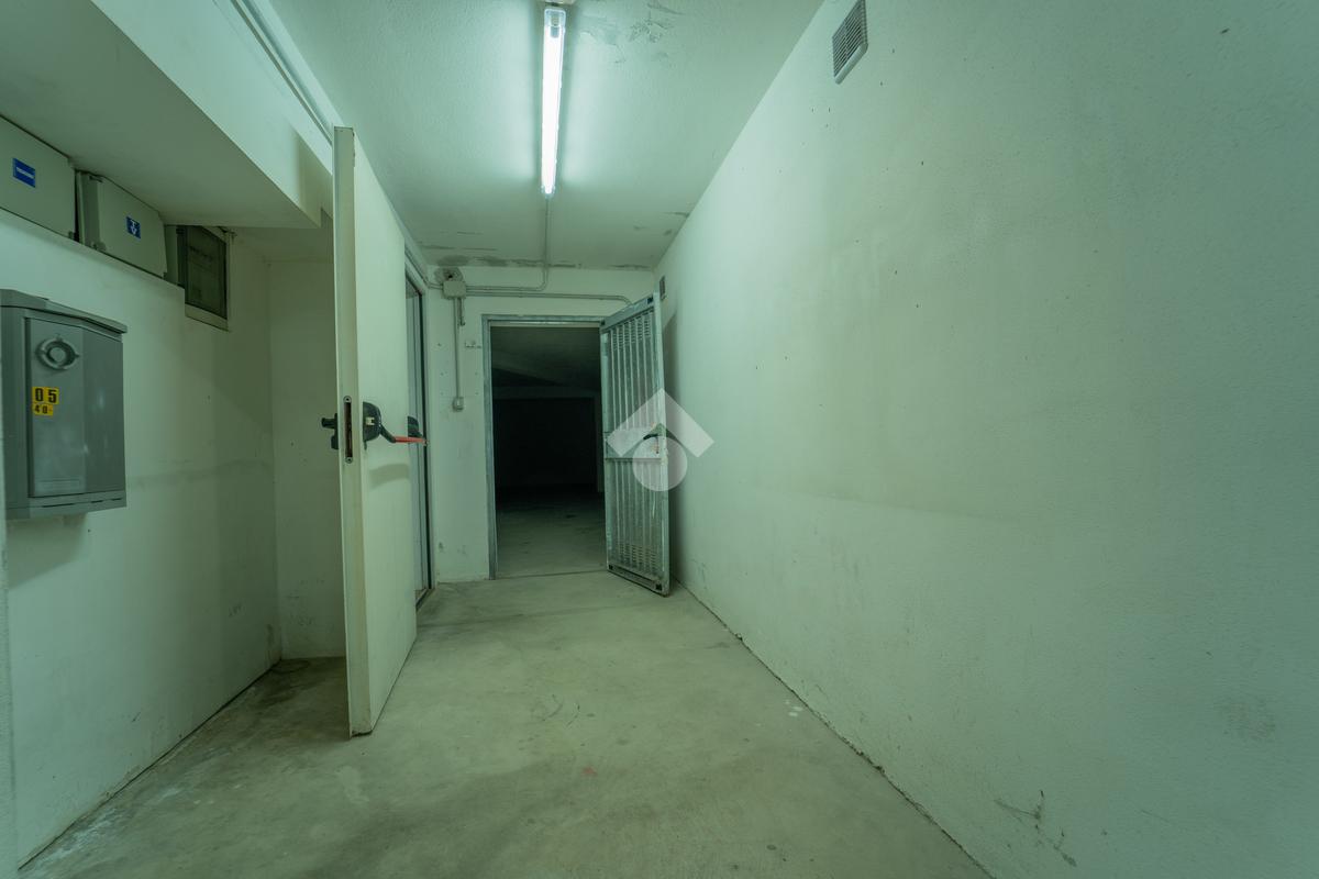 La rampa comune di accesso conduce ad uno spazio comodo per le manovre delle auto, dato che sono presenti anche box del complesso, e la larghezza del basculante permette la possibilità di parcheggiare auto di piccole dimensioni, o puà essere la soluzione giusta dove riporre materiale per un'attività commerciale. Lo spazio di 141 metri quadri permette di avere a disposizione una metratura coperta difficilmente presente nella zona.