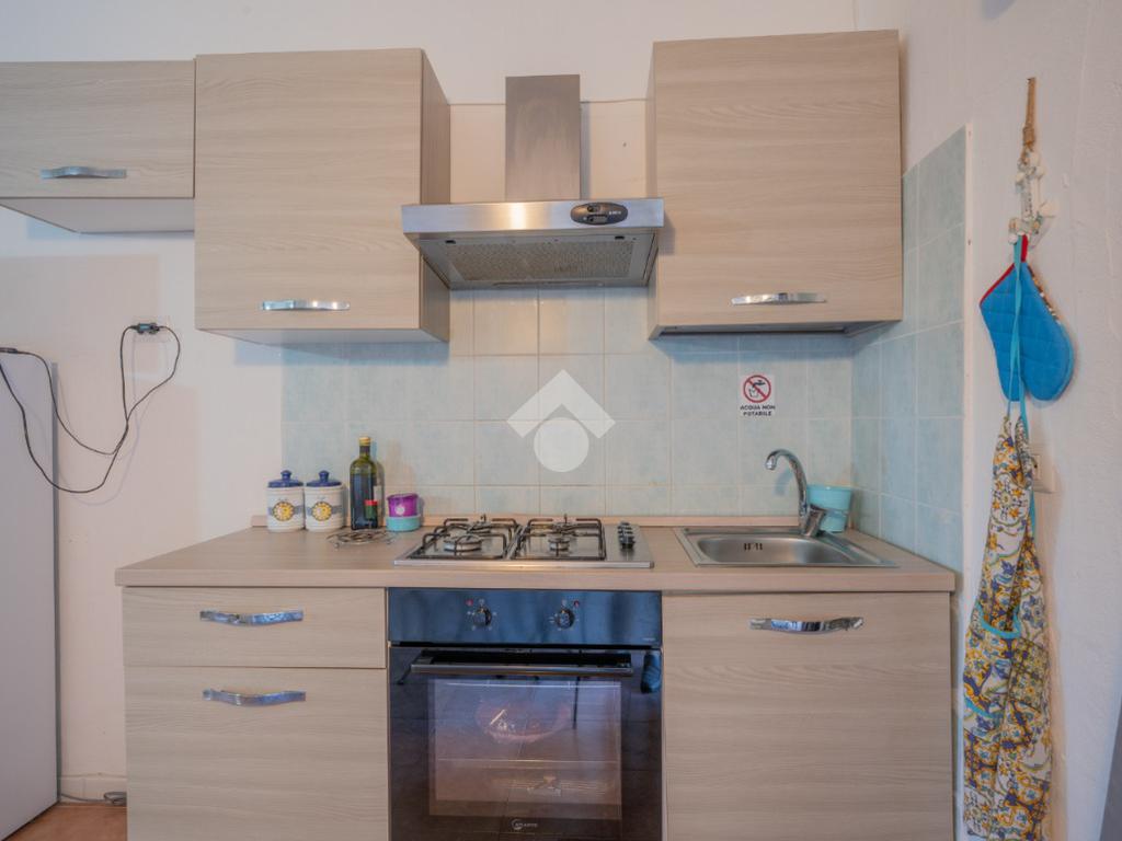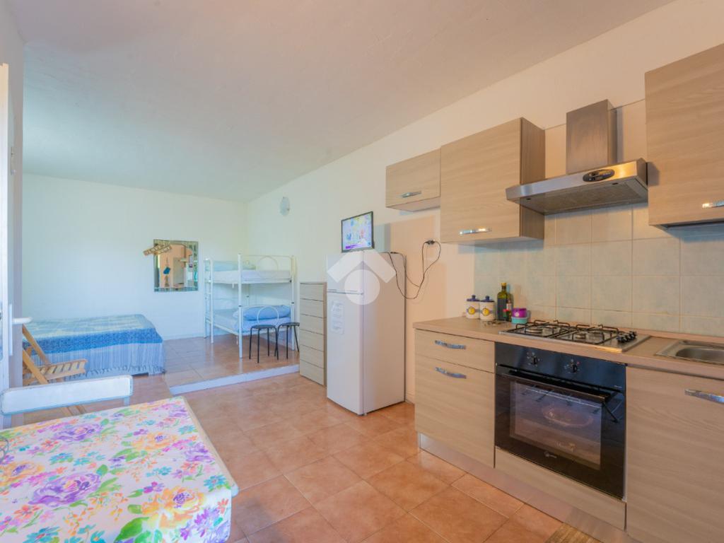 Un'ampia porta finestra scorrevole ci consente di accedere all'interno della proprietà, dove troviamo un vano unico, con angolo cottura subito sulla destra, zona letti sul fondo, dove son presenti un letto matrimoniale e un letto a castello, per un totale di 4 posti letto.