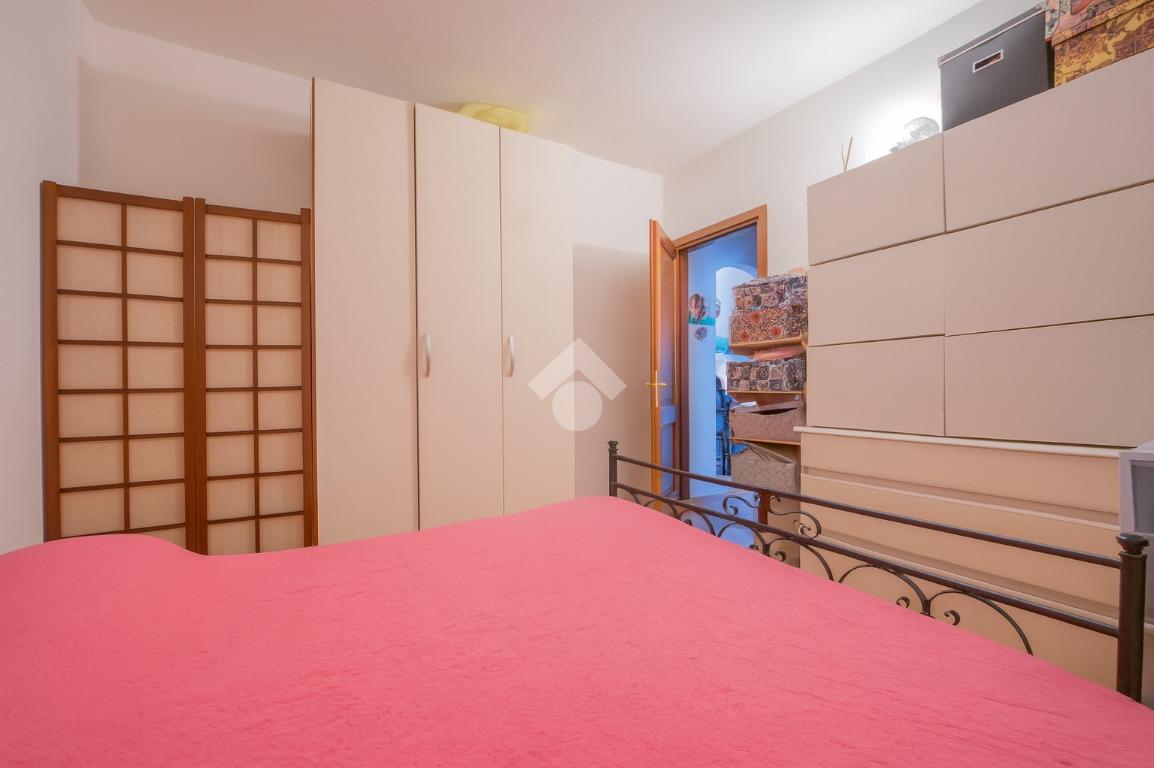 Il disimpegno ci conduce alla zona notte, composta da una camera matrimonale di generose dimensioni e un bagno finestrato con doccia.