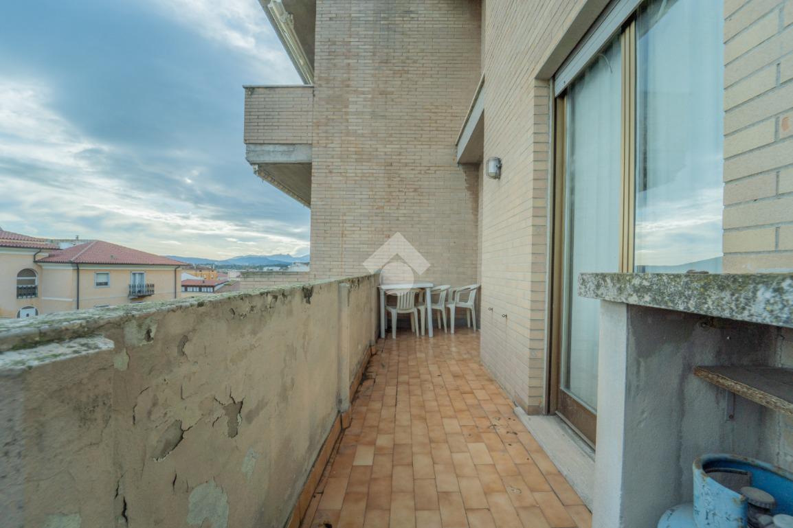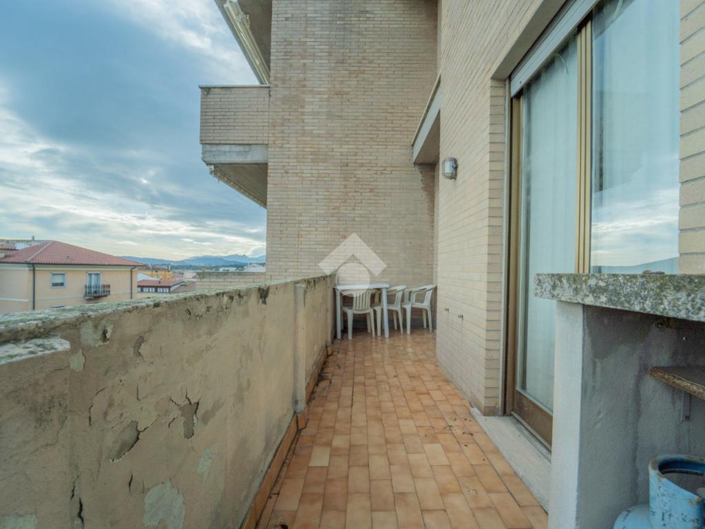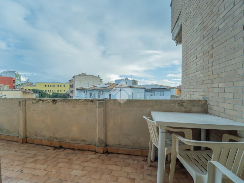 Questo quarto piano piano, di tipologia bilocale, si apre sulla sala con angolo cottura riservato rispetto all'ingresso, e doppio affaccio sulla terrazzina che prospetta sulle Mura Puniche. In questo spazio, è presente un comodo e funzionale ripostiglio, utilissimo per riporre oggetti e ingombri.