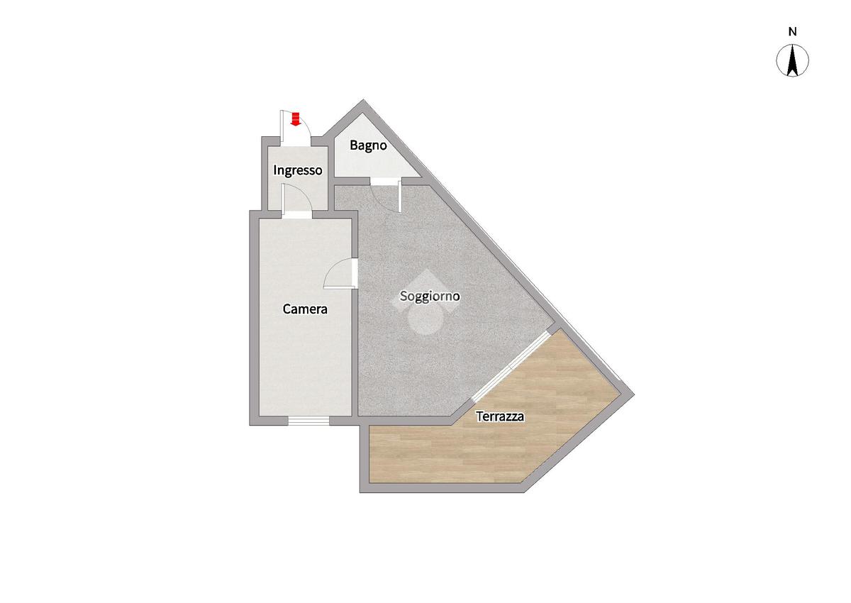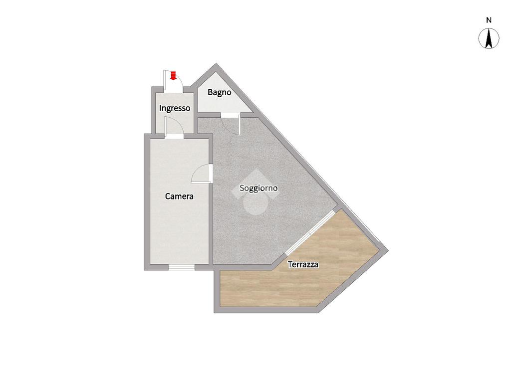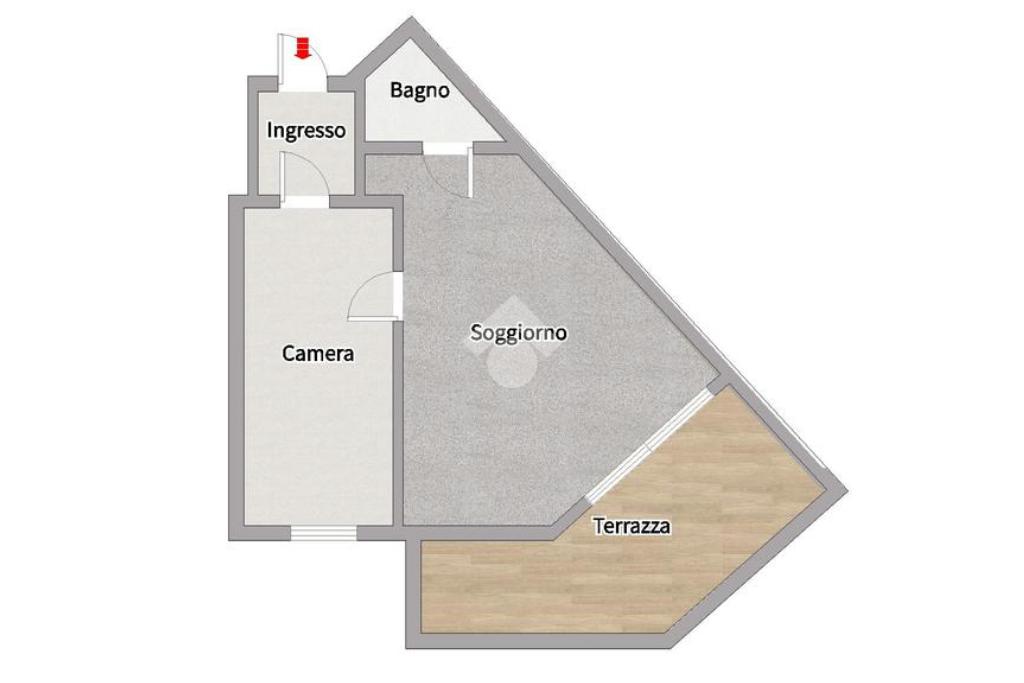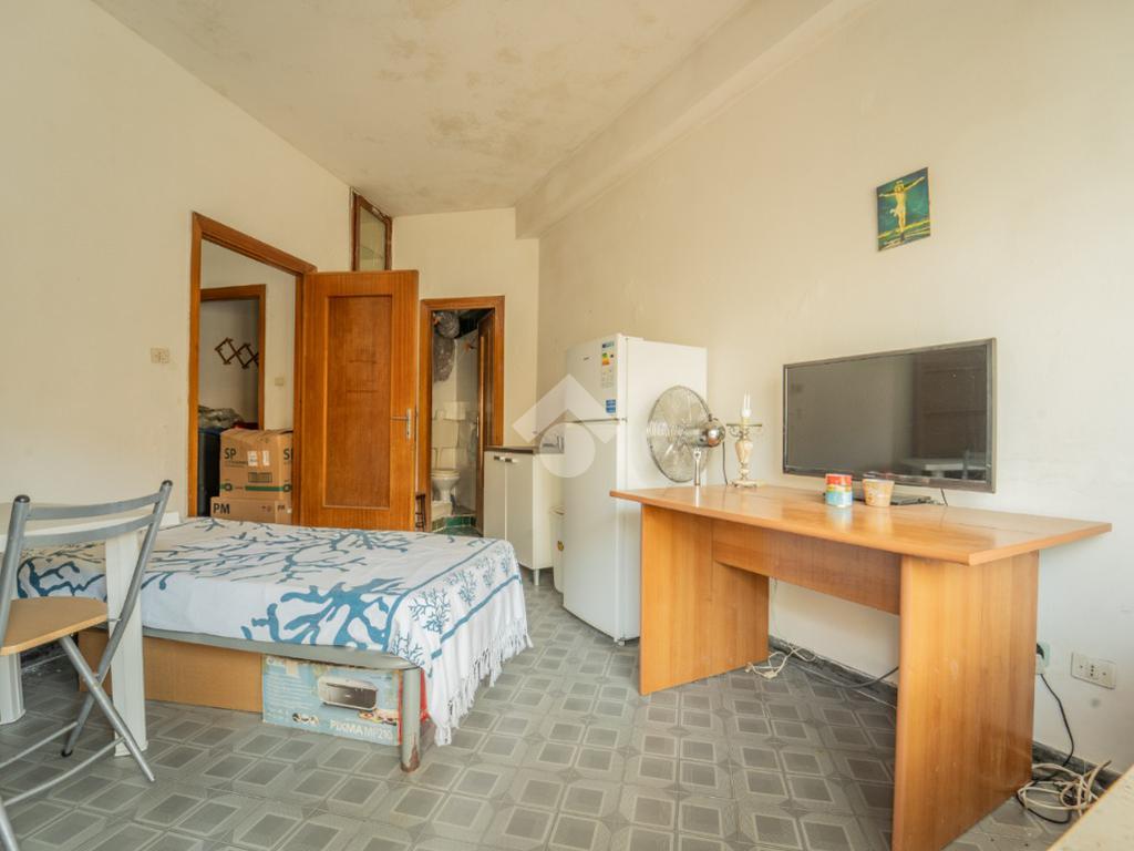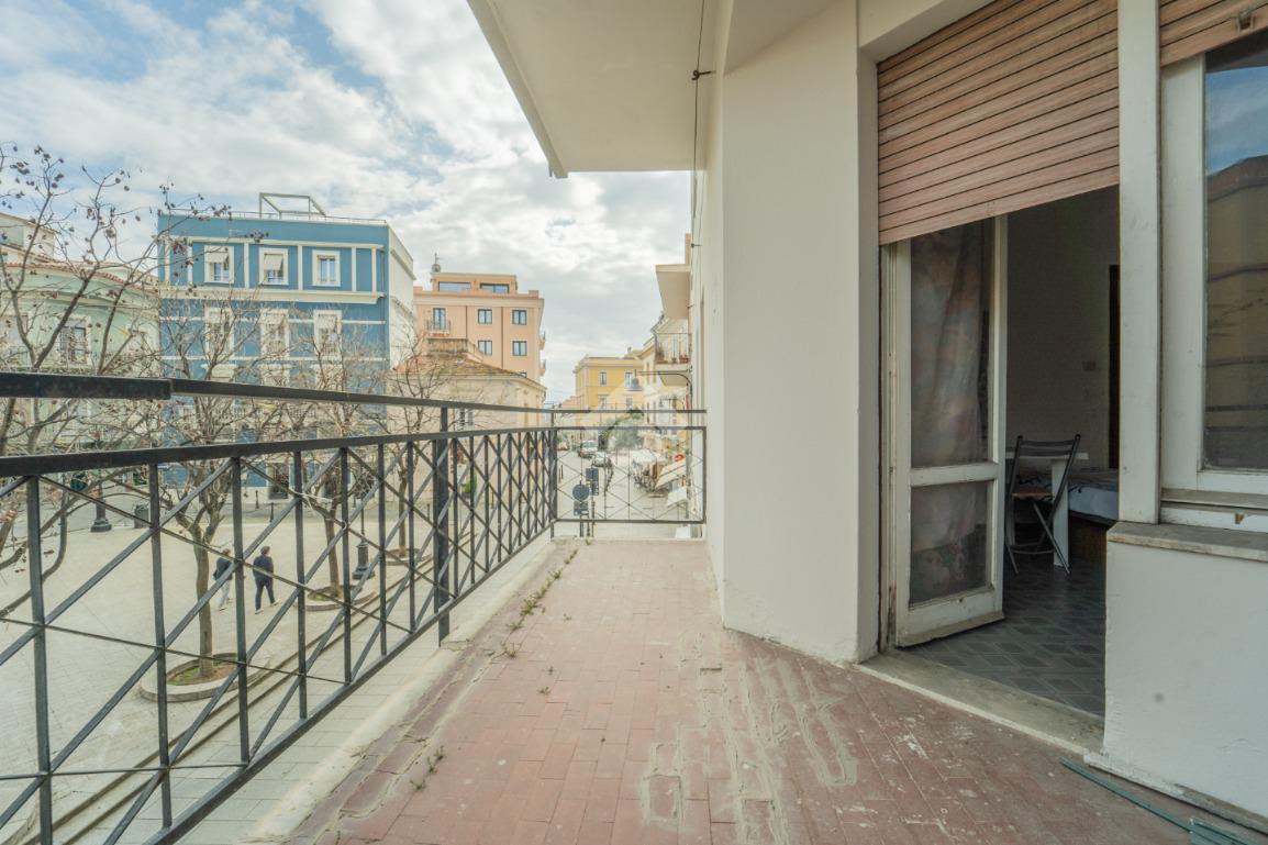 L’immobile si apre su un vano che si espande in lunghezza con affaccio su piazza Regina Margherita; il secondo vano attualmente presenta una camera da letto con un’ampia porta finestra che ci consente di accedere alla terrazza coperta e vivibile.Il bagno attualmente ospita doccia e wc ed è dotato di impianto di areazione ventilata meccanica.