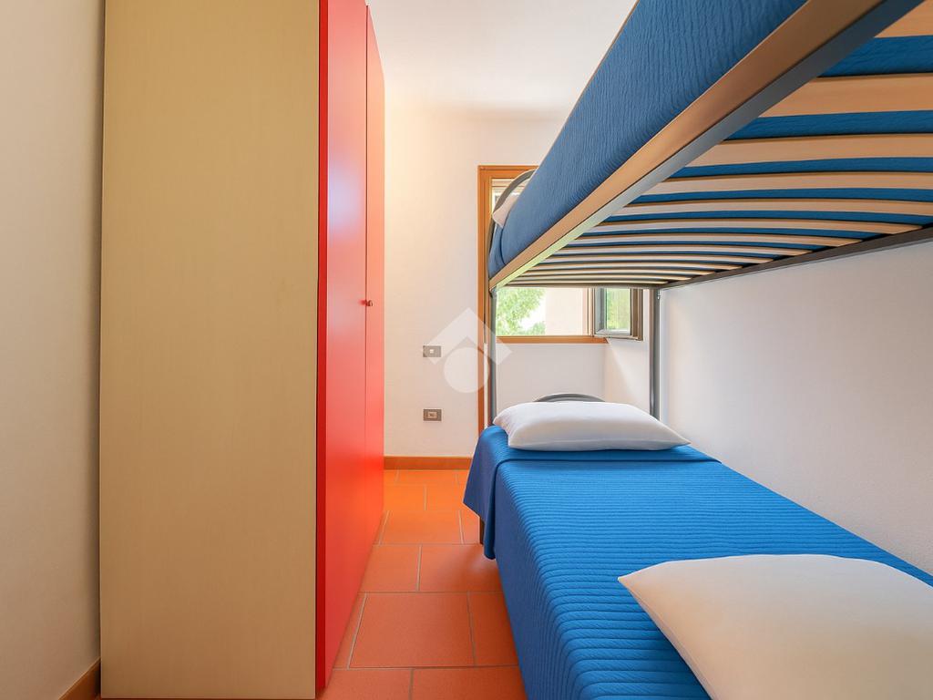 Dal disimpegno si accede alla zona notte, dove due camere da letto di cui una matrimoniale ed un bagno con doccia completano l'interno. Considerando la metratura interna dell'immobile, il divano presente in sala suggerisce la possibilità di ricavare altri due posti letto, per un totale di 6.