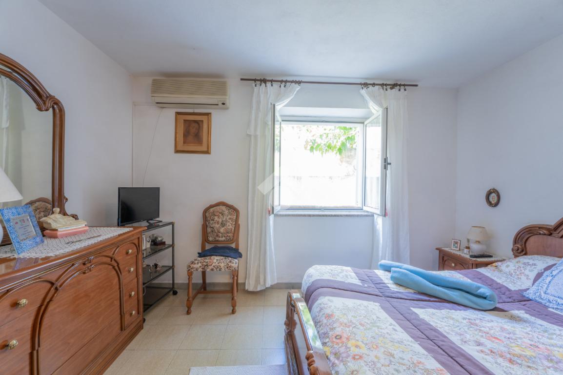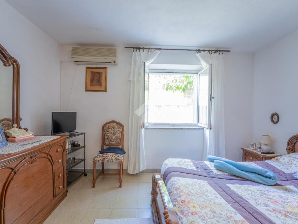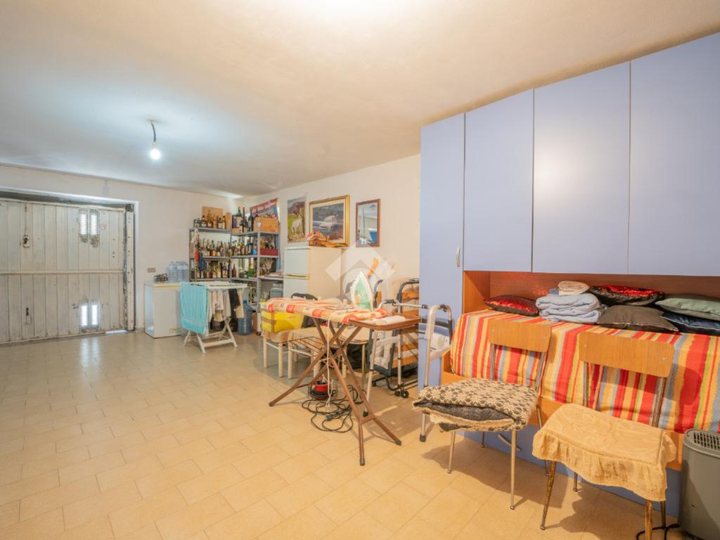 La zona notte presenta una camera matrimoniale ed una camera doppia oltre il bagno finestrato con doccia. Completa l'interno un grande garage con una metratura identica allo spazio occupato, al piano superiore, dalla sala. Questo perchè la casa è stata pensata come abitazione unica tra i due piani, con uno spazio a disposizione dell'auto e di scaffalature per gli attrezzi della casa.