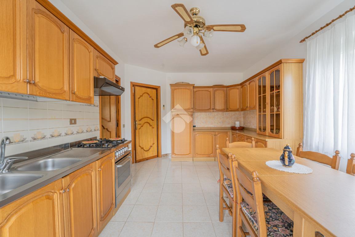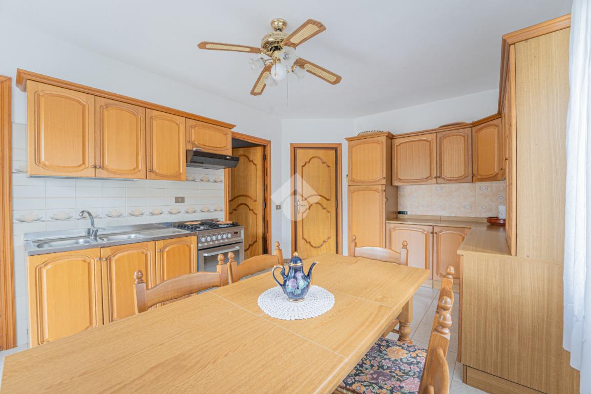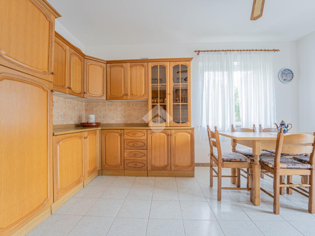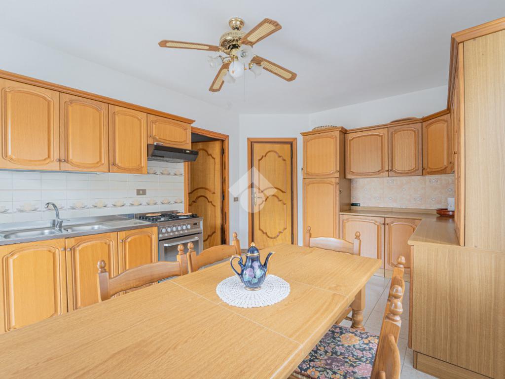 La cucina è separata ed abitabile, composta attualmente da una mobilia ad angolo e ben strutturata per riporre utensili vari senza dover rinunciare a spazi importanti per la gestione quotidiana, inoltre l'ambiente presenta un balcone che affaccia su uno spazio verde di proprietà.