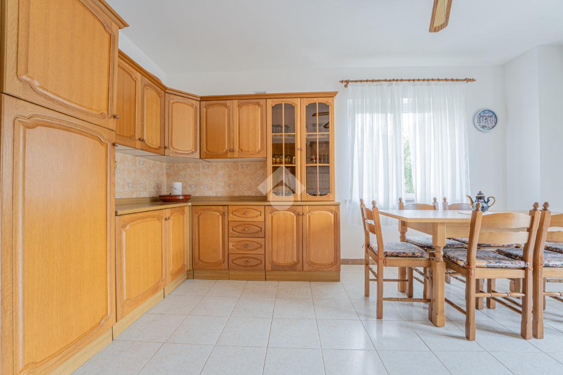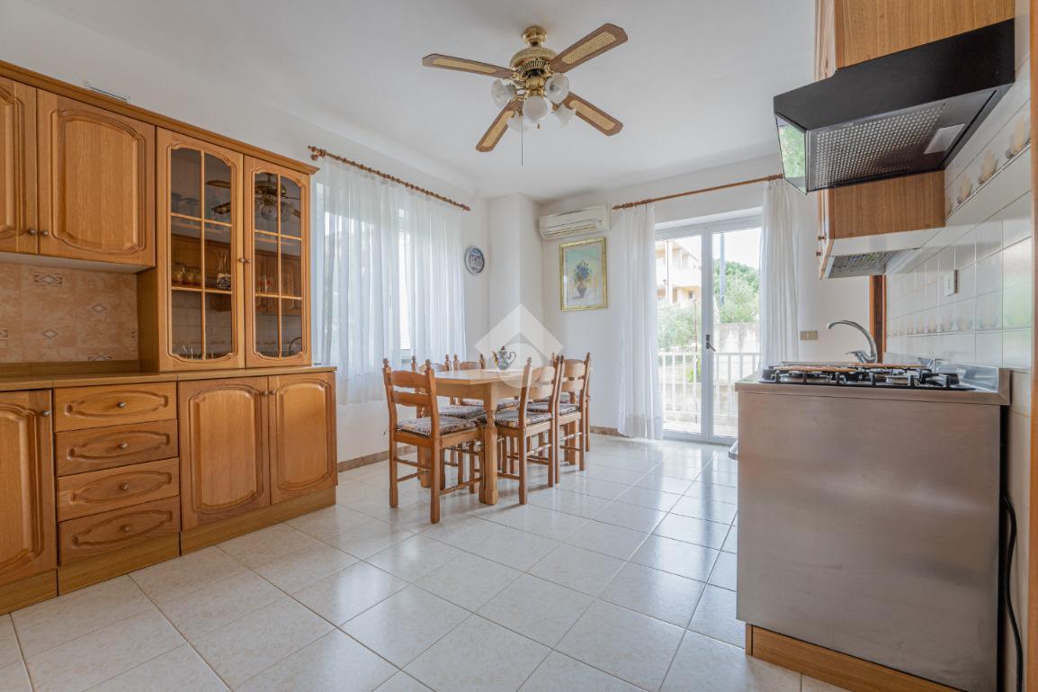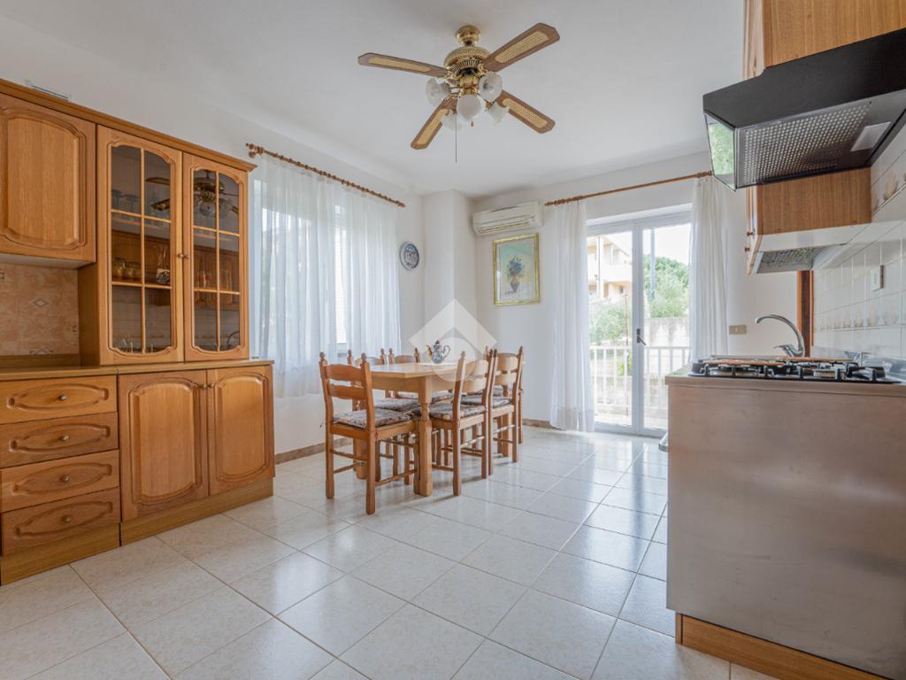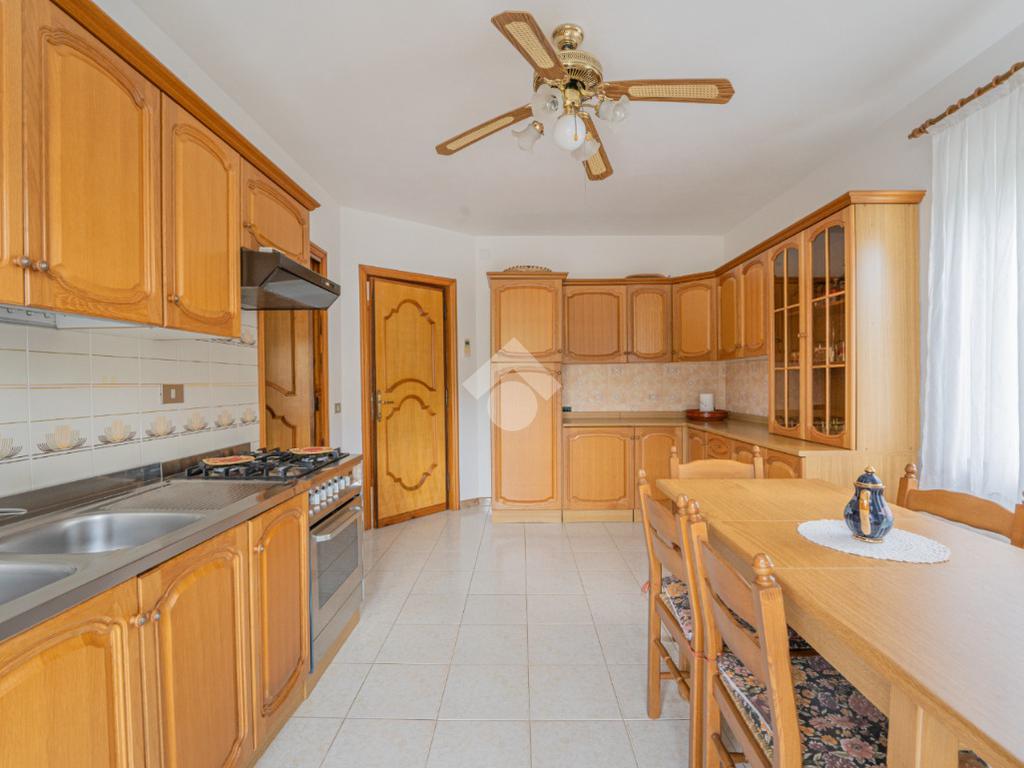 La cucina è separata ed abitabile, composta attualmente da una mobilia ad angolo e ben strutturata per riporre utensili vari senza dover rinunciare a spazi importanti per la gestione quotidiana, inoltre l'ambiente presenta un balcone che affaccia su uno spazio verde di proprietà.