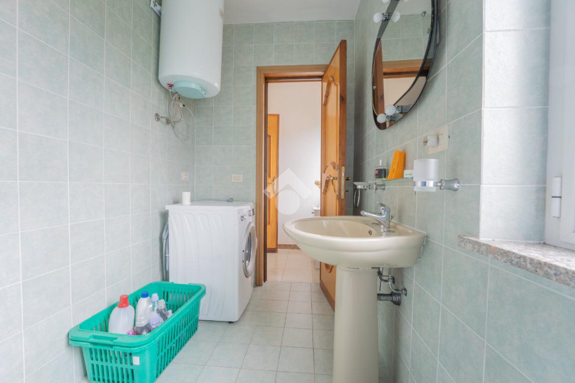 Completa la zona giorno una comoda dispensa con scaffalature e un bagno finestrato, con doccia.